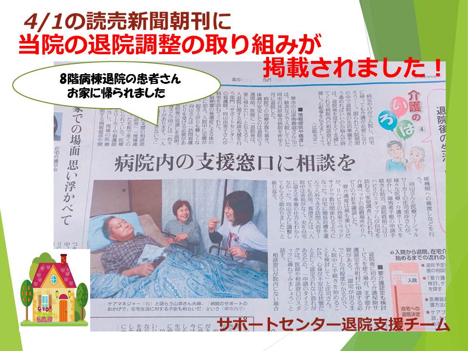読売新聞4/1付掲載「退院後の生活 どう準備?」