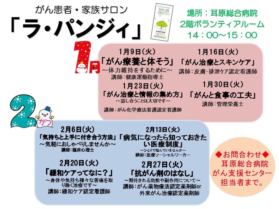 ラ・パンジイ がん患者・家族サロン1,2月 ご案内