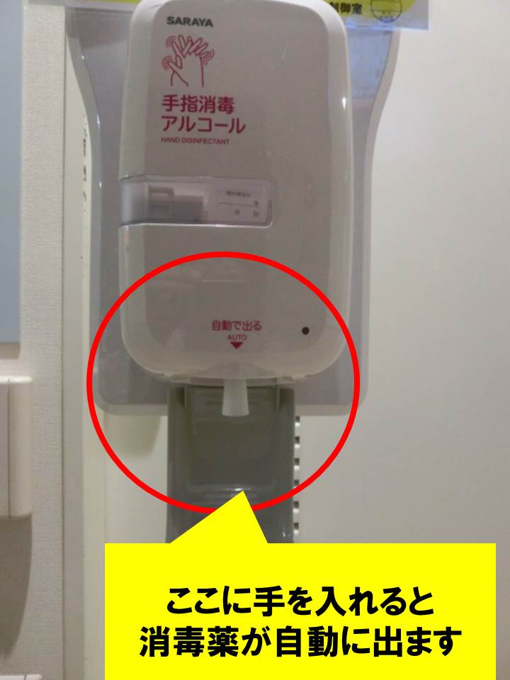 1、手指消毒をしてください (消毒薬をしっかりすりこんでください)