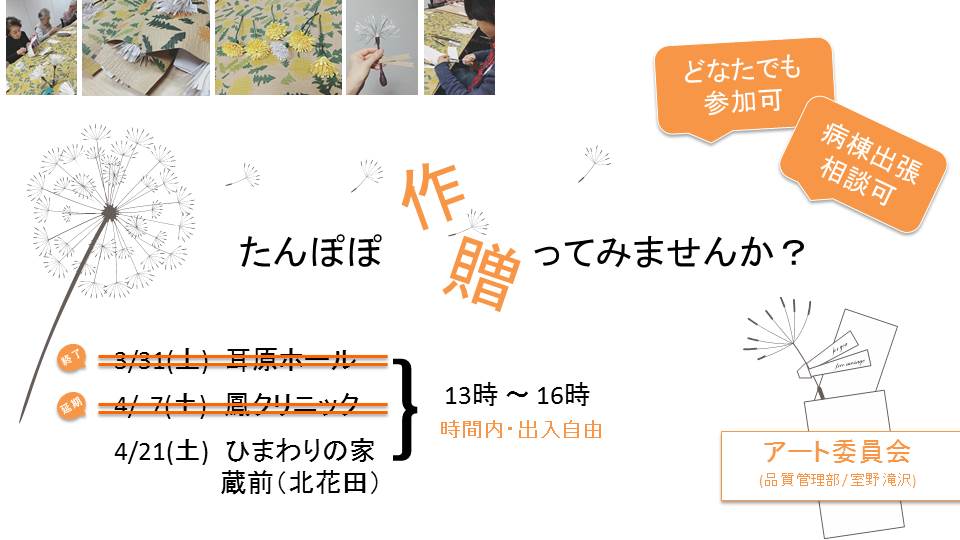 3/31(土)みみはらホール開催のようすは こちらからごらんください ホスピタルアートFacebook