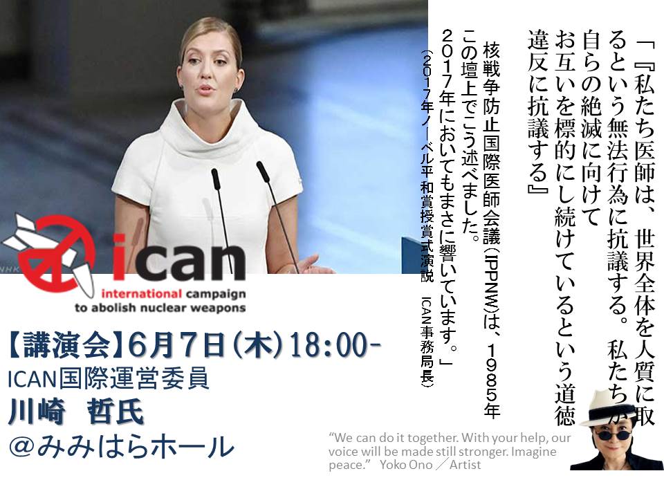6/7(木)ノーベル平和賞受賞 ICAN 川崎哲氏講演会