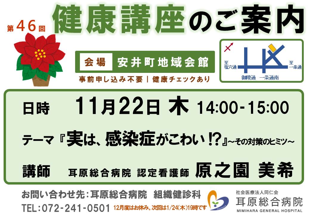 11/22(木)第46回健康講座 安井町地域会館「実は、感染症がこわい?!」