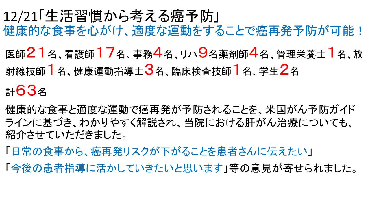 消化器センター メディカル・カンファレンス 「生活習慣から考える癌予防」 吉川 健治 肝胆膵外科部長 12/21(木) ご参加、ありがとうございました 消化器センターのページ 診察などのお問い合わせ サポートセンター