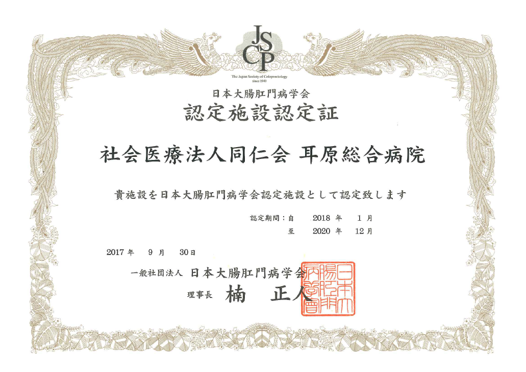 このたび、日本大腸肛門病学会の専門医を育成するための施設認定を取得いたしました。