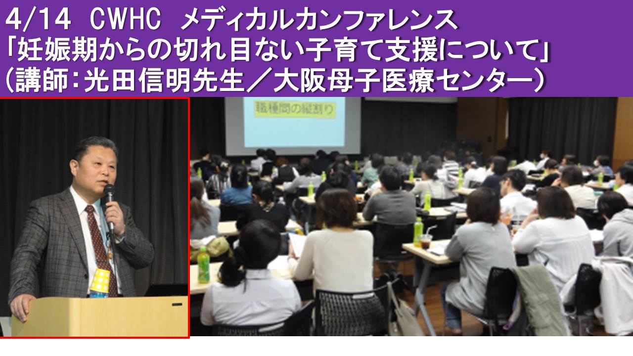 地域の先生方、助産師さん、医学生さんら約30名ご参加いただきました。 光田信明先生からは、特定妊婦、虐待、DVを早期に発見し、医療機関と行政が連携して、支援することの重要性を、わかりやすく解説して頂きました。 「助産師として、保健センターや子育て支援課と連携して親子・家族に寄り添っていきたい」「虐待、未受診など目の前にある問題だけでなく、患者の背景にも目を向けていきたい」 等の感想が寄せられました。ご参加、ありがとうございました。