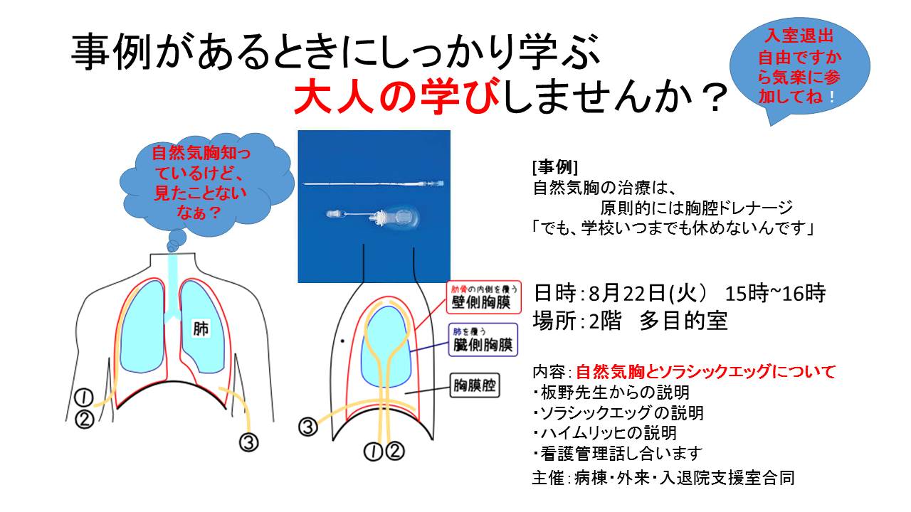 自然気胸の治療は、原則胸腔ドレナージ・・・