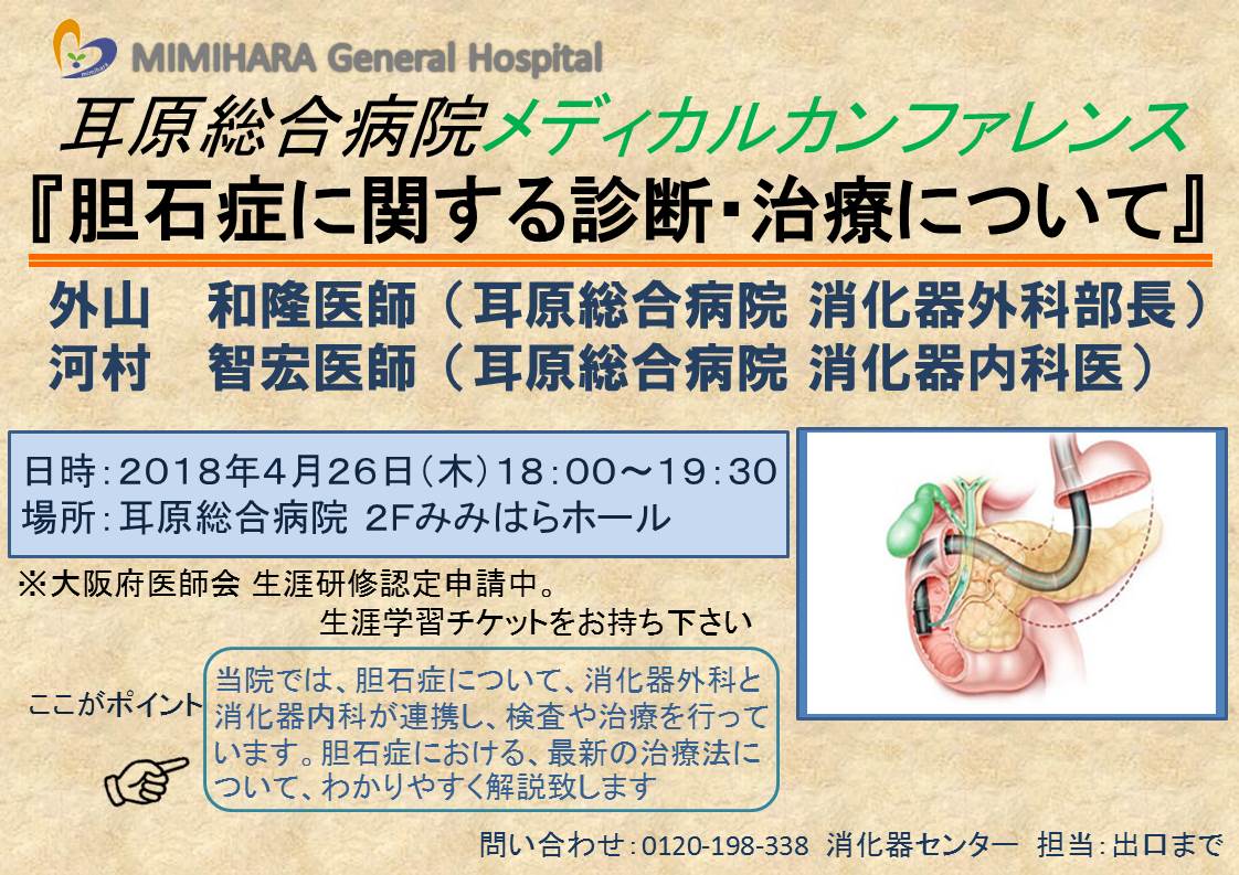 〇日時:4/26(木)18:00-19:30 〇場所:みみはらホール(当院隣接) 〇お問い合わせ:サポートセンター 消化器センター(出口) 0120-198-338 〇大阪府医師会 生涯研修認定申請中です 生涯学習チケットをおもちください 〇当院ホームページ 消化器センター(外科・消化器内科)