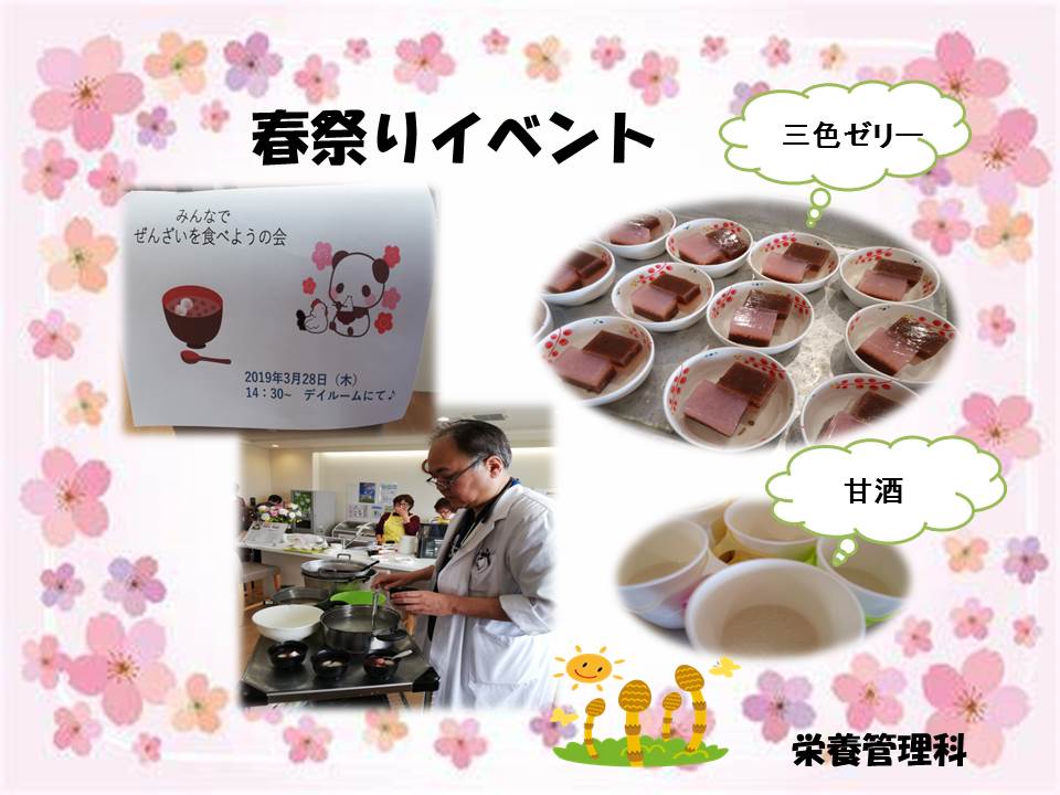 季節を味わっていただくことをモットーにしている栄養管理科。 春にちなんだメニューをご提供しています。 緩和ケア病棟では、病院長みずからお汁粉を振る舞いました。
