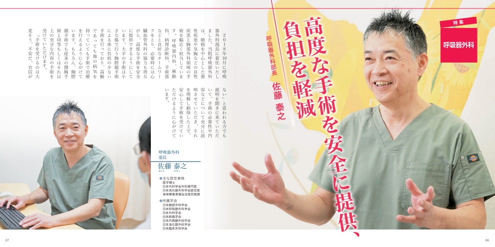 特集2 呼吸器外科 高度な手術を安全に提供、負担を軽減 肺がんを中心に腹腔鏡手術による低侵襲の治療を提供