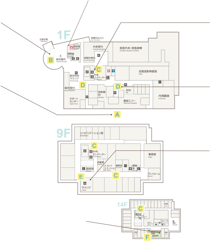 そんな思いから全てのアートを「希望のともしび」とし、院内の随所に展開しています。