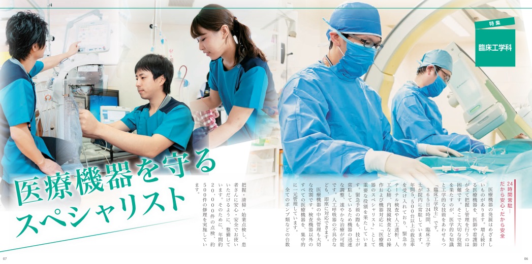 当院理念である、安全・安心・信頼の医療を提供するため、安全に医療機器を使用できるように院内の医療機器の保守・点検を行い、院内の啓蒙活動にも力を入れています。