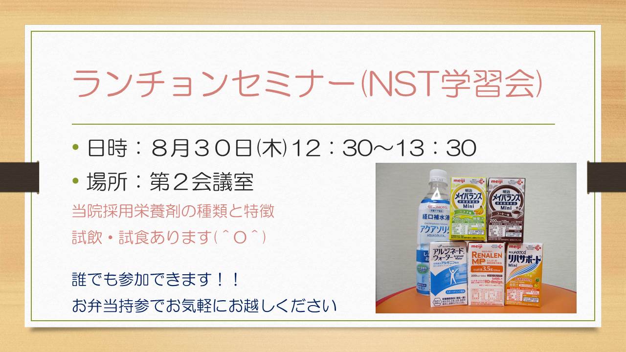 NSTというのは、栄養サポートチーム(nutrition support team)の略で、患者さまの栄養を多職種でサポートしていくシステムです。