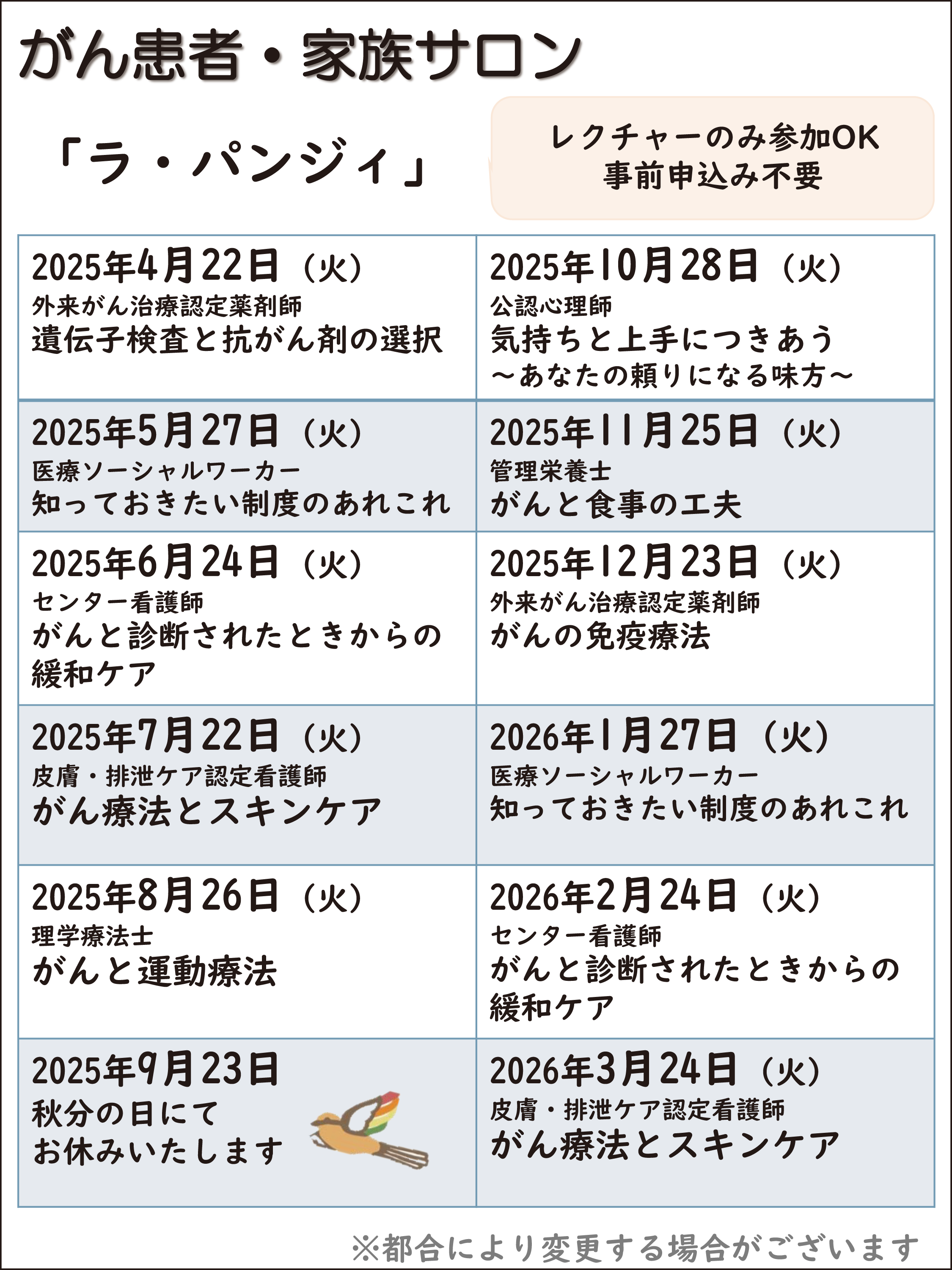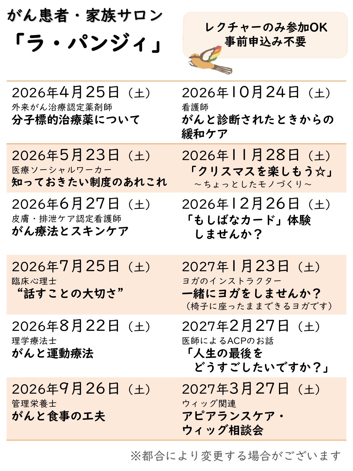 - がん支援プログラムについてのお問合せはご相談ください
