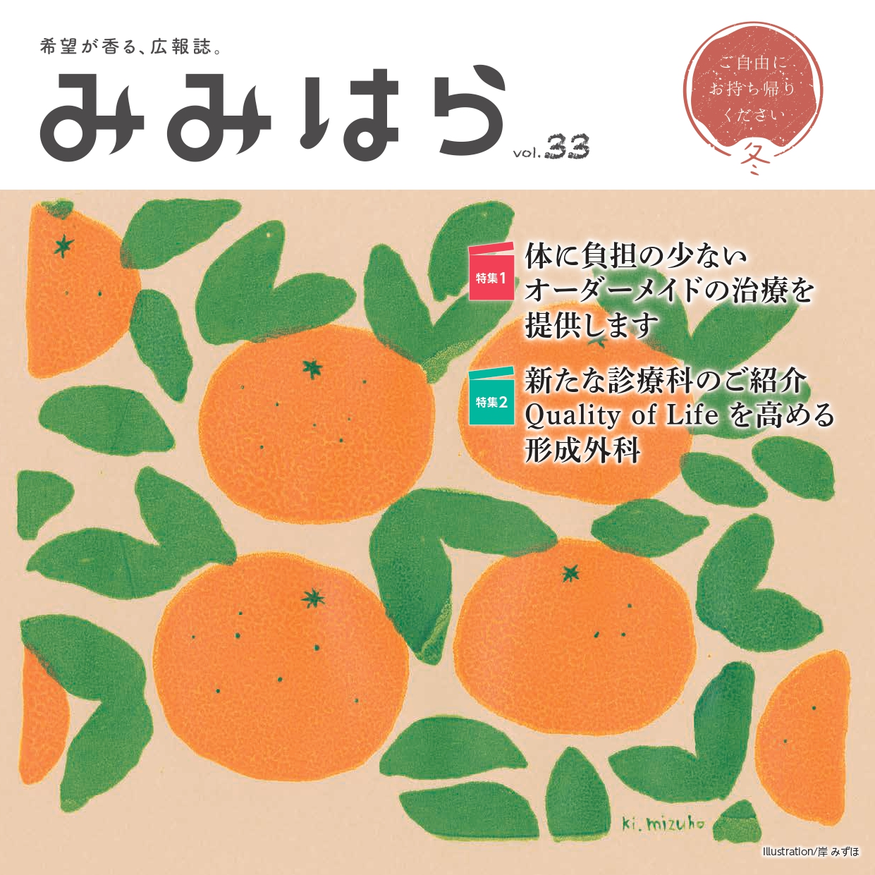 広報誌みみはら 希望が香る、広報誌 みみはら 季刊誌みみはらvol.33 季刊誌みみはらvol.32 季刊誌みみはらvol.31 季刊誌みみはらvol.30 季刊誌みみはらvol.29 季刊誌みみはらvol.28 季刊誌みみはらvol.27 季刊誌みみはらvol.26 季刊誌みみはらvol.25 季刊誌みみはらvol.24 季刊誌みみはらvol.23 季刊誌みみはらvol.22 季刊誌みみはらvol.21 季刊誌みみはらvol.20 季刊誌みみはらvol.19 季刊誌みみはらvol.18 季刊誌みみはらvol.17 季刊誌みみはらvol.16 季刊誌みみはらvol.15 季刊誌みみはらVol.14 季刊誌みみはらVol.13 季刊誌みみはらvol.12 季刊誌みみはらvol.11 季刊誌みみはら_vol.10 季刊誌みみはら_vol.9 季刊誌みみはら_vol.08 季刊誌みみはら_vol.07 季刊誌みみはら_vol.06 季刊誌みみはら_vol.05 季刊誌みみはら_vol.04 季刊誌みみはら_vol.03 季刊誌みみはら_vol.02 季刊誌みみはら_vol.01 患者さん向けの広報誌です。総合案内・サポートセンター(1F)などで配架しています。 ご自由にお持ちください。 CONTENTS MENU メニュー