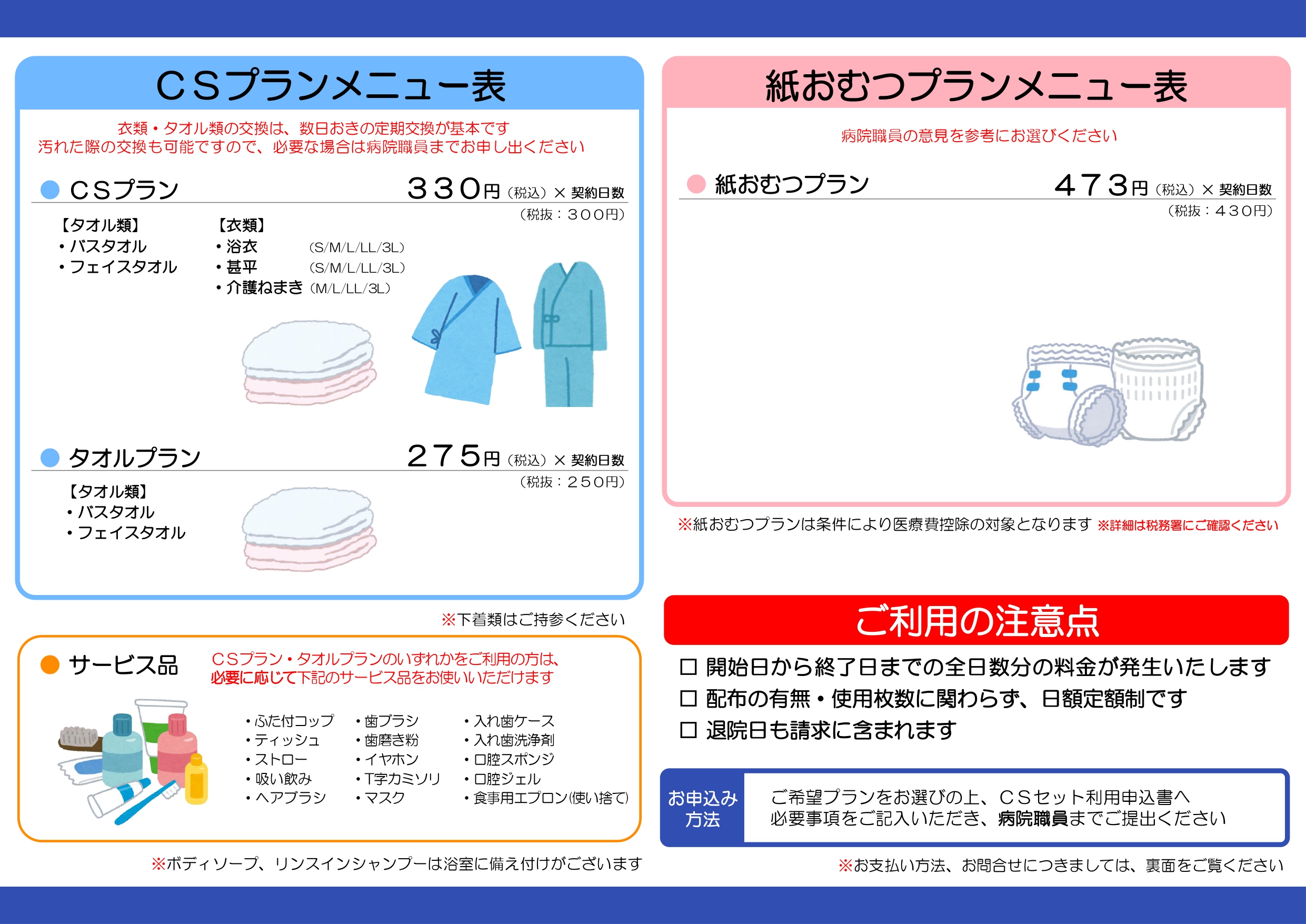 - 入院準備や補充のお手間が軽減されます